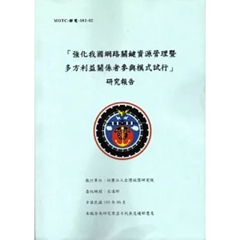 兩岸社會發展的挑戰與轉型![]() | 「強化我國網路關鍵資源管理暨多方利益關係者參與模式試行」研究報告![]() | ||